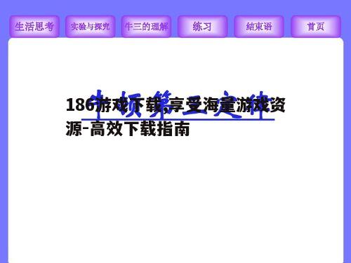 在数字化时代,游戏成为了人们休闲娱乐的重要方式之一。186游戏下载,作为热门的游戏平台,提供了丰富的游戏资源,满足不同玩家的需求。本文将详细介绍186游戏下载平台的特点、优势以及如何高效地下载和安装游戏,帮助玩家们轻松畅玩。...